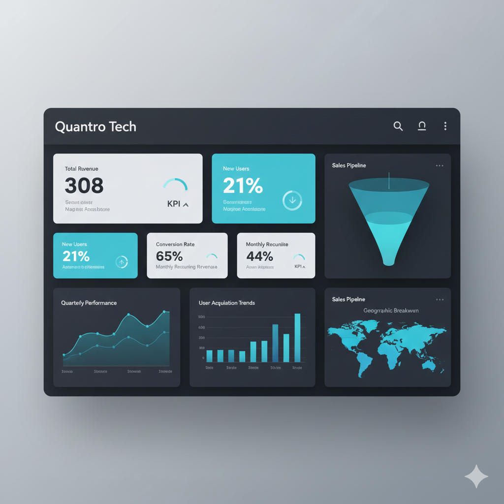 We designed an analytics dashboard for Quantro Tech, helping their team track KPIs, identify trends, and make smarter decisions. The revamped reporting process improved campaign efficiency.
